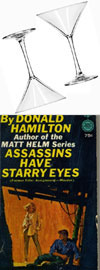 I don’t know much, but I know I love the song “Starry Eyes” by Mötley Crüe. Do I love the book by Donald Hamilton called Assassins Have Starry Eyes? Not as much, definitely. But I did like it, though I don’t know the Hamilton oeuvre that well (and yes, I did just bust out the “oeuvre.” I rule like that, literarily.) I don’t even know Matt Helm, who’s called out so boldly on the coverm but who isn’t in the book at all. I do know that the book was once called Assignment Murder, but the Crüe never had a song called that (though, in hindsight, maybe they should have). And that it’s a funny jumble of a book, with some mystery, some intrigue, some hard-to-believeness, and some anti-government plot or rigmarole that Donald (if I can call him Donald) seems down on somewhat. I also know that the following quote is a nice kick in the face to those who would drink a pre-made or a poorly made Martini, and that is why I’m quoting it, and why Mötley Crüe would dig the book, because they don’t stand (in leather and thigh high boots) for any bad Martinis.